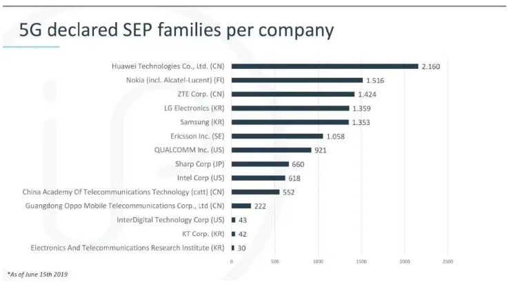 # [3 Y7 x0 o# ^# o) v9 h, X2019年6月,德国专利数据公司Iplytics发布了用关于5G SEP专利数的统计报告。 W7 A, b# `- ?7 h6 P