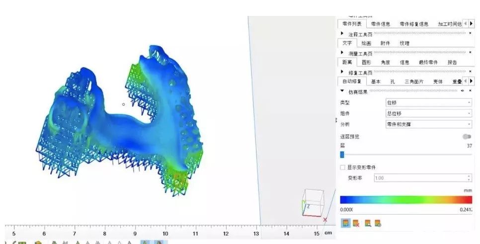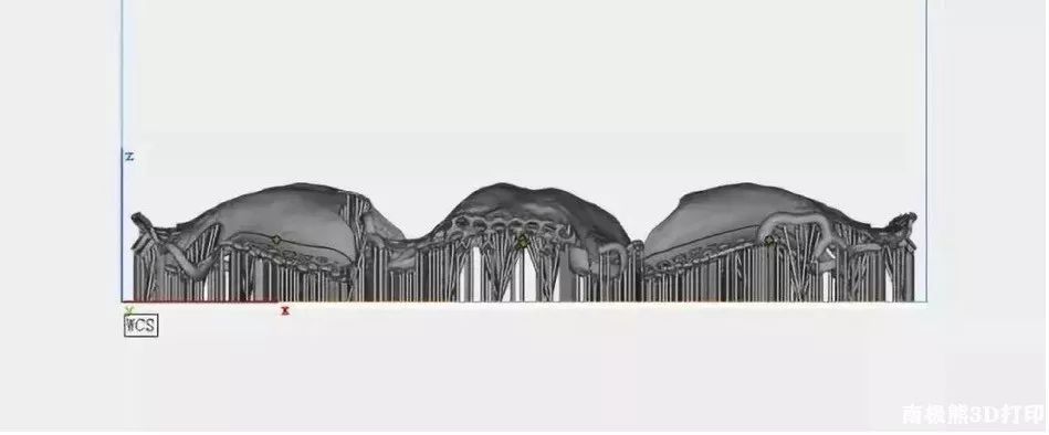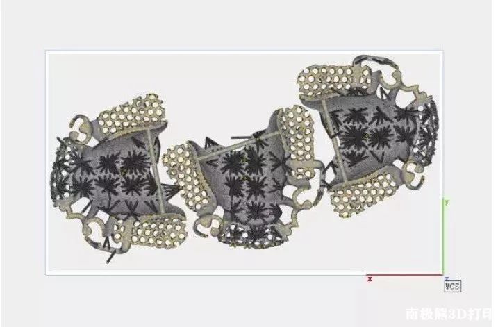: |& X, p7 J8 f8 m& k1 Z1 p- }. J使用materialise设计软件为红蜡支架添加支撑,以提供更强的支撑避免变形。
