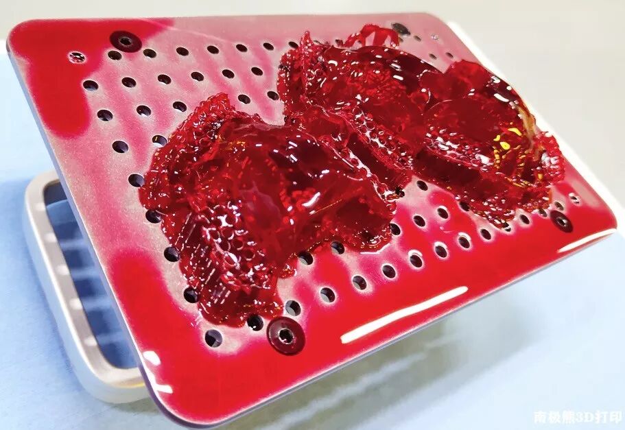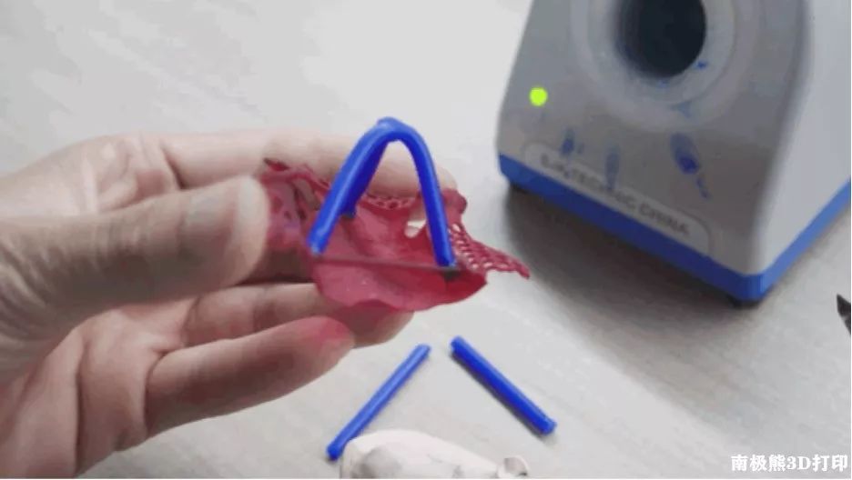 打印出红蜡支架,进行后处理工作,包括清洗、烘干、去支撑、后固化和送检程序。