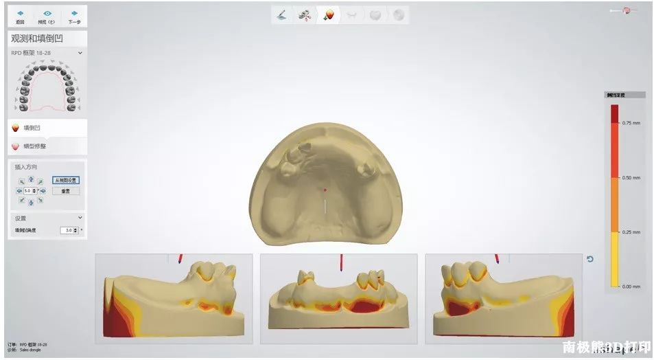 根据实际情况设置填倒凹角度参数,确认义齿就位道,利于后续佩戴时更好就位。0 _7 s5 h# C6 p1 V7 e! t2 |: F6 W