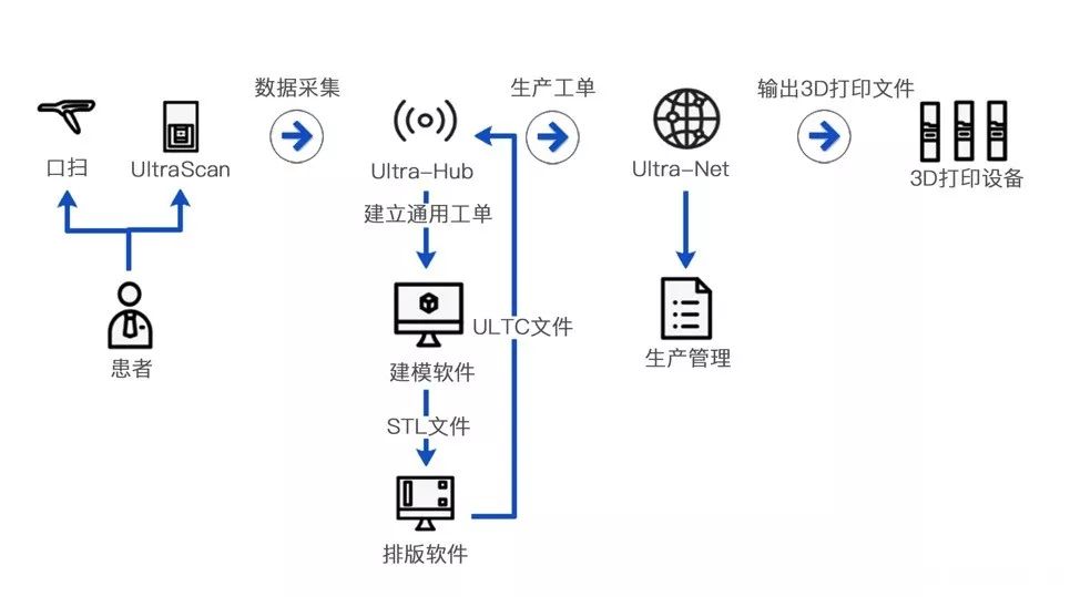 应用3Shape口腔扫描仪/UltraScan 200仓扫设备采集数据、黑格科技Ultra-Hub和Ultra-Net数据化管理平台系统进行数据处理和传输、先进的数字化前处理技术,免去了填倒凹设计、手工雕蜡等传统铸造流程,缩短了工艺流程。) @- t! T. j5 j9 \- U