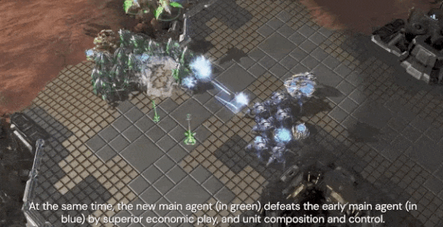 一部分新智能体执行的策略,只是早期策略稍稍改进后的版本;而另一部分智能体,可以探索出全新的策略,完全不同的建造顺序,完全不同的单位组合,完全不同的微观微操方法。
