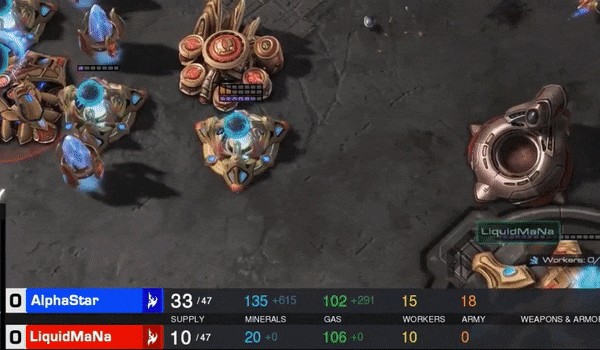 9 j) p* m0 ~) g在与星际2职业选手的比赛中,AlphaStar以总比分10-1的成绩制霸全场,人类职业选手LiquidMaNa只在它面前坚持了5分36秒,就GG了。 - X+ Q$ q( y3 n6 R