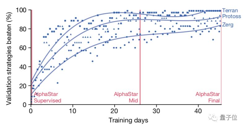 现在,伴随着最新论文发布,AlphaStar的最新战力也得到公布:击败了99.8%的选手,达到宗师级别。 6 L* Q: W' M7 u$ C* s) `/ S8 [) y