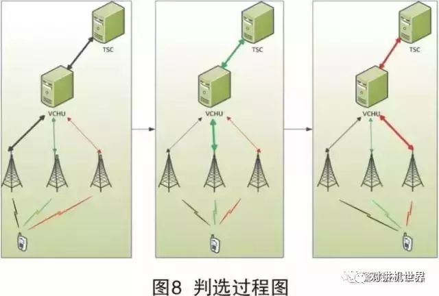 一般来说,选择信号质量最佳的基站作为信号源,保证高保真的语音与信令数据。当终端处于N个基站的重叠覆盖区时,系统需要收集齐这N个基站的上行信号场判选条件的数值后,才能从中判断出最佳信号通路,做出判选。假设N个链路之间最大时延差值为△T的话,那么系统必须要至少设置△T的接收信号缓冲区,这样会增大系统的话音时延。