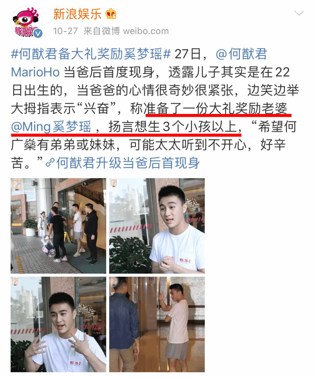 何猷君的妈妈,赌王四太开心之余,表示奚梦瑶至少要生3个,何猷君接受采访,表达了同样的意愿。3 m0 a F: p2 Y6 q* I1 a" U( V4 N