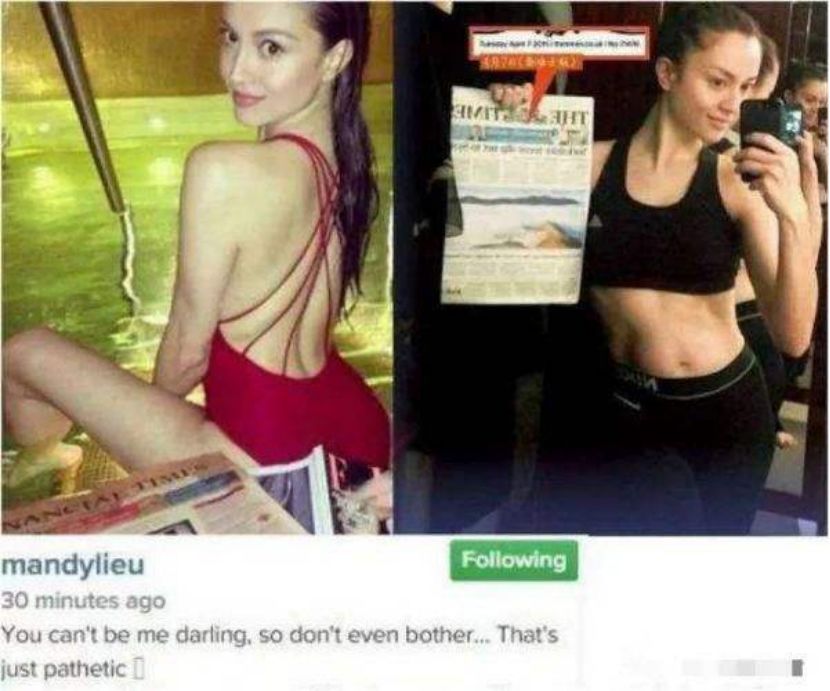 0 i i2 V0 B. Q: x陈慧玲在社交媒体上po孕照,刘碧丽马上炫耀自己6个月的孕肚照,嘲笑陈慧玲怀孕只能穿xxl号的衣服:“你也做不到像我这样,所以不必搞这么多东西了,再这样做只会很可悲”。