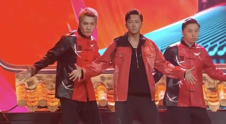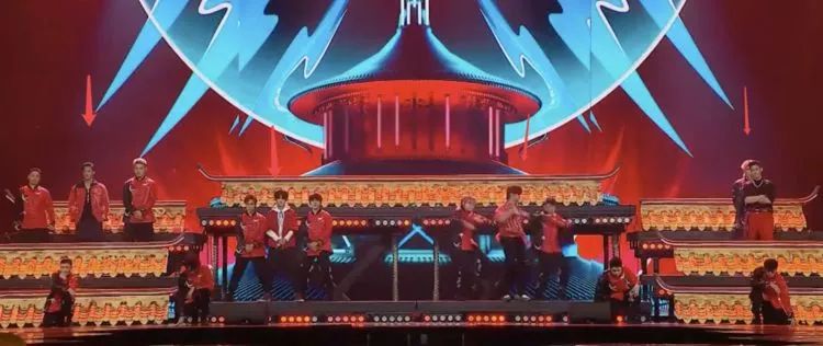 3 ]; _- k) m* h8 j& w4 q韩庚的造型就比较收敛一点,穿着大红色外套,内搭也是黑色,跳舞的时候有种诙谐感,很轻松,表情也没有狠劲儿。 9 k. U6 ~6 V: Q1 a1 h, ~, a