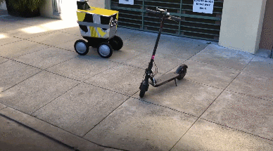 另外,Serve 在前方设置了一双“眼睛”(摄像头),视觉系统能够让它安全地穿过人流和道路中交织的车辆,而顶部的发光环可以充当转向灯。如果遇到困难,可以借助顶部的小型触摸屏进行视频呼叫,以获得帮助。当然,Postmates 也可以对它进行远程监控。