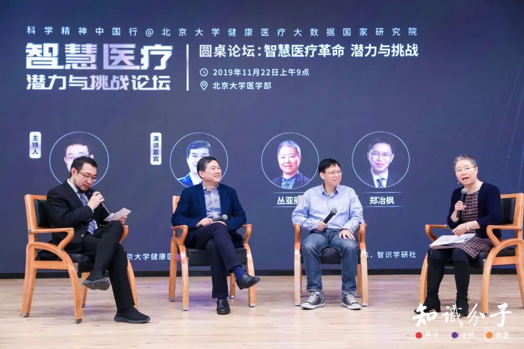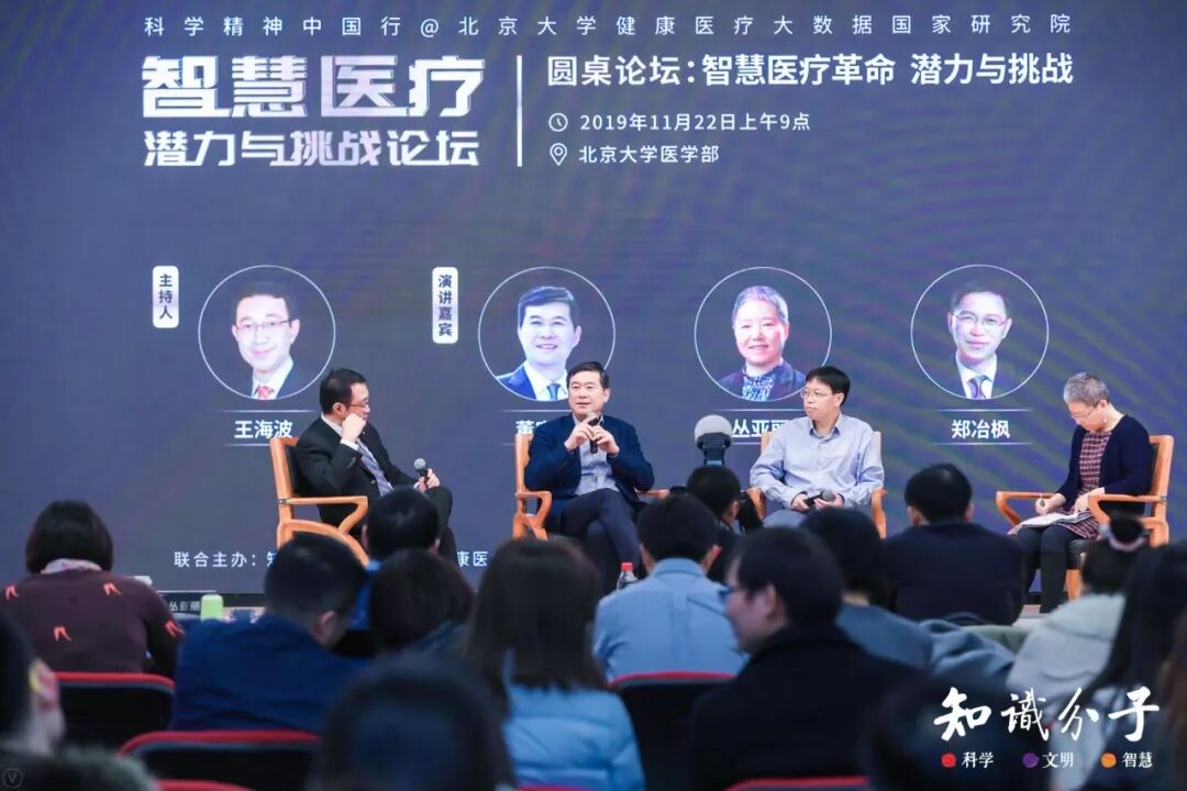 “智慧医疗:潜力与挑战”论坛近年来,随着人工智能技术、5G、云计算和大数据技术的蓬勃发展,以健康大数据和AI辅助诊断为代表的新医疗形态,正在不断激发健康医疗行业的创新和变革,提升医疗服务的效率和质量,增进公众多层次、多样化的健康福祉。在技术进步的同时,与大数据相关的信息孤岛、个人信息安全等问题也亟需对话和讨论,形成行业共识。 在此背景下,作为国内领先的科学新媒体,“知识分子”联合北京大学健康医疗大数据国家研究院,共同举办 “智慧医疗革命:潜力与挑战” 论坛,邀请业界领袖、技术精英、伦理专家研讨当今中国智慧医疗改革的发展机遇,以及在人文、技术、法律、伦理等相关领域的挑战应对,并进行圆桌对话。论坛由腾讯腾云智库独家支持。