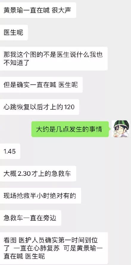 爆料人反复强调黄景瑜一直在喊,很大声,而医护人员(爆料者强调不一定是医生)是第一时间到位。: k# n& `, Z+ g% `! A3 E1 P