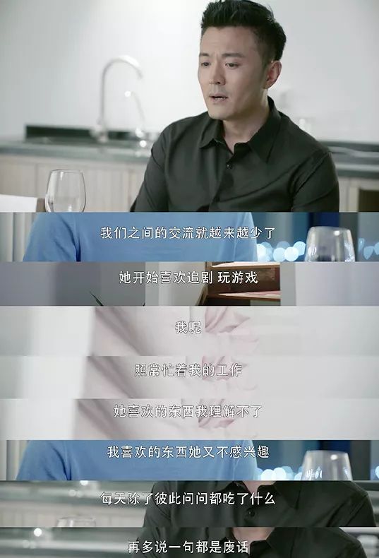 : T" D; g/ d- w2 C“她喜欢的东西我不了解,我喜欢的东西她又不感兴趣,两个人每天吃了问今天吃什么,其他都说一句都是废话。”毫无沟通的婚姻,有多无奈。