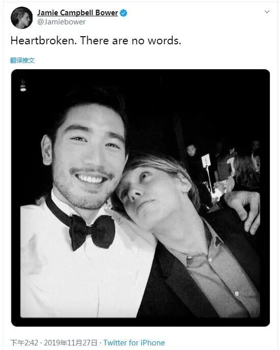 曾在电影《圣杯神器:骸骨之城》中与高以翔有过合作的英国男演员杰米·坎贝尔·鲍尔也在社交媒体发文,表示“心碎,无语”并附上了两人曾经的合照。