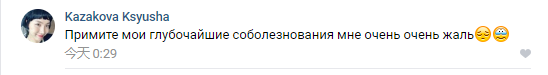 % k/ O! G$ N! {“Kazakova Ksyusha”网友说: 请接受我最深切的哀悼,实在是太遗憾了。 ) \% k3 |# S3 V3 W. m' ~