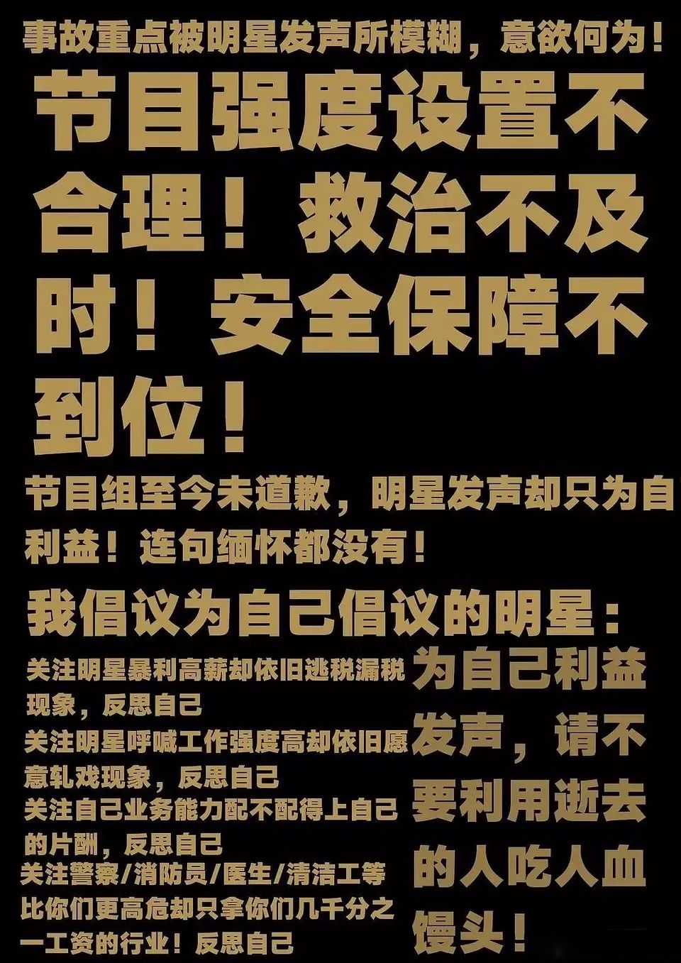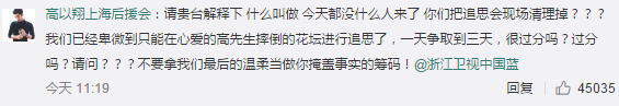 0 M7 ~3 ]0 r9 C. {1 e" c但是,这群人不敢公开质问节目组,改成利用高以翔猝死来给自己谋福利,模糊重点,嘴脸就变得异常难看。