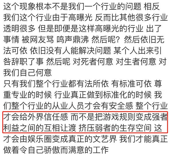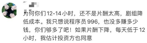 工作时间长演员愿意发文控诉,那片酬过高、助理过多、抠图轧戏,明星们更应该集体抗议。
