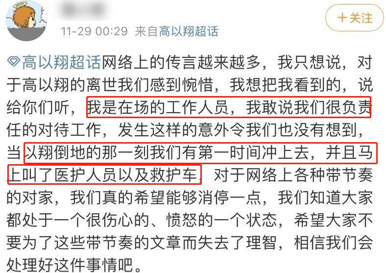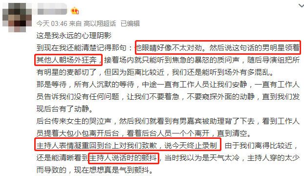 但这两天,有自称现场观众的网友,还原了高以翔事故现场。