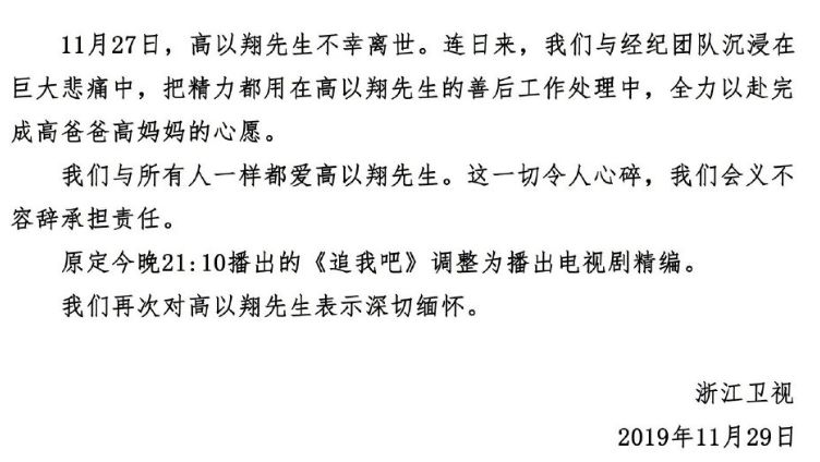 5 S; W( @! j! ?% C, K2 [电视台再次发布声明,目前把所有的精力都放在了高以翔先生的善后工作处理中,会全力以赴的完成高爸爸、高妈妈的心愿。