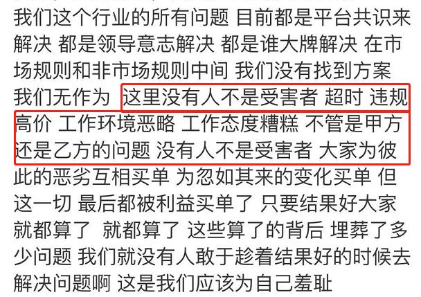 行业存在问题,的确不应该以薪酬来评论,可在所有工作都加班、都很辛苦的大环境下,