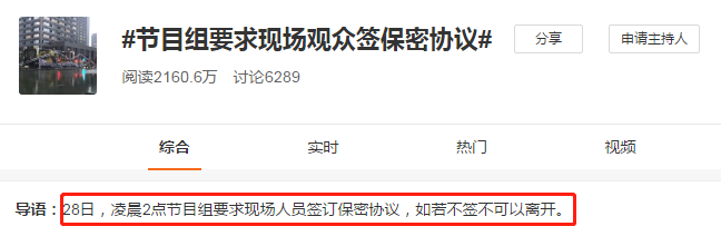 爆料说,节目组第一时间要求观众必须签保密协议,如果不签的话,不可以离开。' z& Q J8 x5 M: n+ s