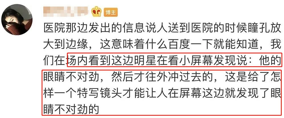 3 f% N9 e! j, A- x而且观众强调,场内明星看到小屏幕上发现眼睛不对劲,才往外冲。