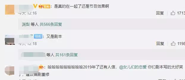 . C8 D3 ?5 |% e! P因此,评论区的大家也表示不相信这个综艺“编造”的结局,都知道这种节目是有剧本的, 嘉宾虽然有自己的发挥空间但是主体走向还是按照节目组给出的有冲突性和观看体验的剧本来发展的,最后一期来个happy ending也是正常“套路”。, A* u8 C+ L( P9 x$ P x4 |2 p, i