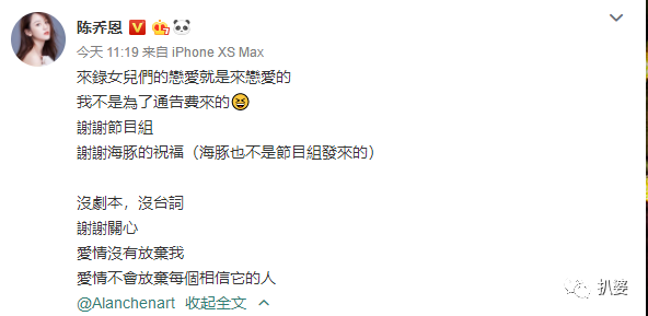 - i1 s! u% N. [陈乔恩猝不及防公布的新恋情让人眼睛跌碎了一地。