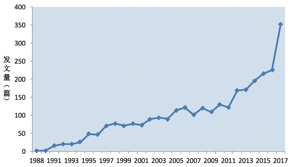 从检出结果看,“人工智能在智能驾驶工程技术开发中的应用”的SCI 论文最早出现于1988年,此后呈现稳步增长的态势,2017年发文量最多,达到353篇。 A/ h. ^4 }" Z x