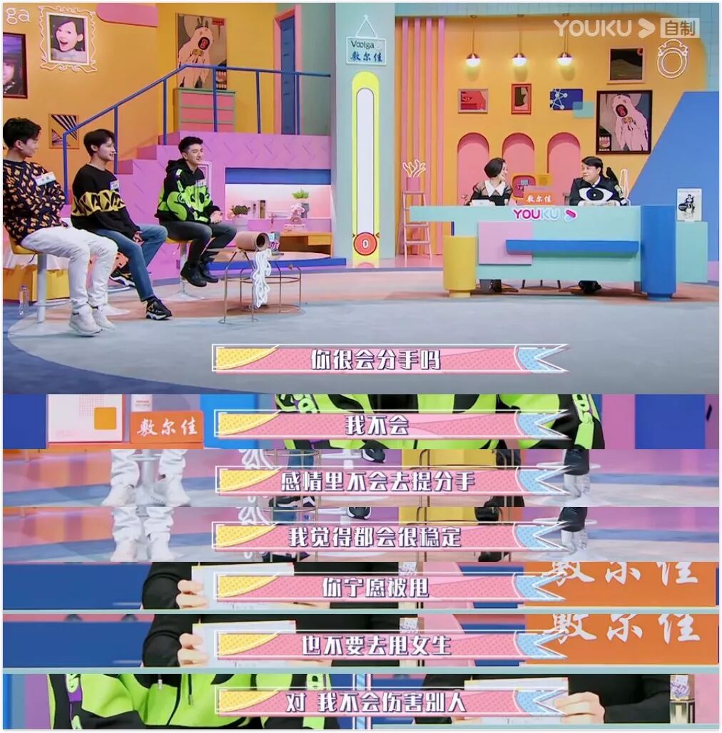 关于分手的问题,他说他在感情里不会主动提分手,不愿意伤害女生,宁可自己被甩。