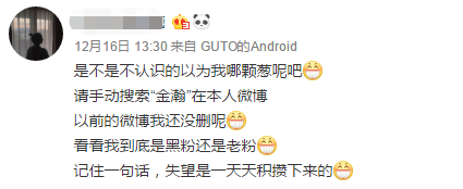 可他是不是金瀚本人假装粉丝,倒是一个字都没提。