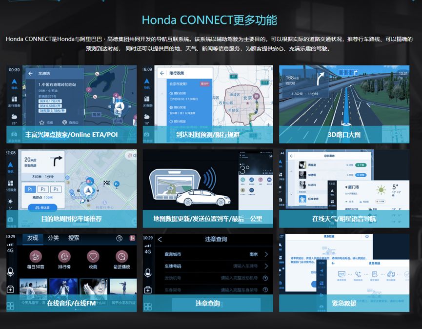在通信技术日新月异的今天,本田顺应中国移动互联网和车联网技术趋势,在第一代Honda CONNECT基础上,联合阿里巴巴旗下高德地图以及科大讯飞等合作伙伴,推出了这套智导互联系统的第二代版本。此次迭代进化路线聚焦在辅助驾驶上,强化了实时拥堵信息、目的地天气、新闻、车载应用等。. o0 s. ?. n, o