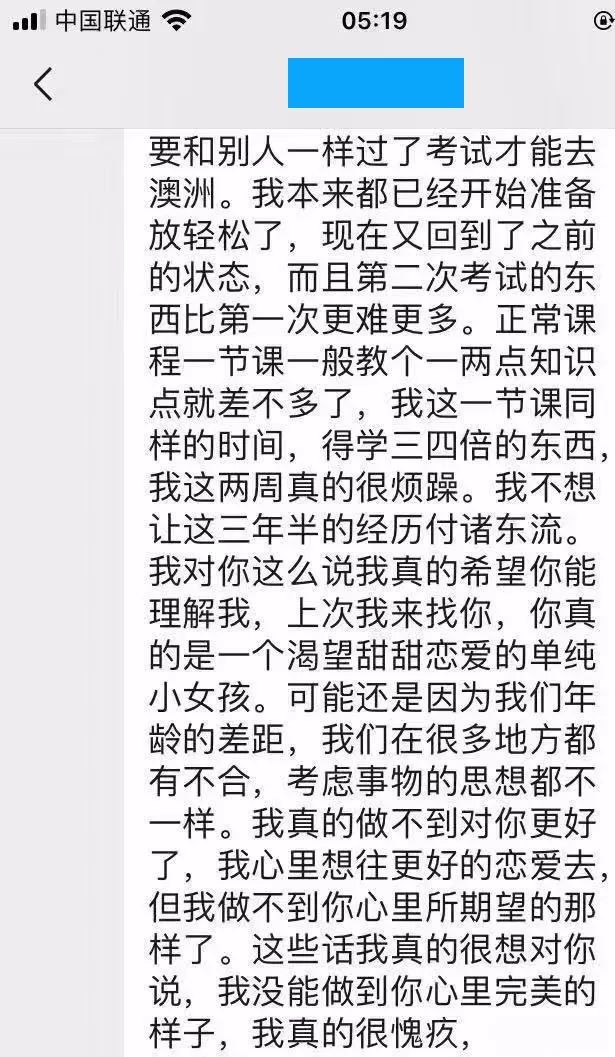 9 b) w# h1 K2 Y* @8 w5 ?7 N9 Q來找我的前一個禮拜還和我說晚上九點半要交手機其實根本沒有交我看見他 12 點給我姐妹朋友圈點贊了,只是不想和我聊天才故意騙我的,沒過幾天渣男就以最近壓力大,考試爲由和我吵架跟我提了分手,分手理由還是在怪我不讓他睡覺,不理解他然後名正言順的分手了2 j9 o3 W* u9 ?0 W' M$ u