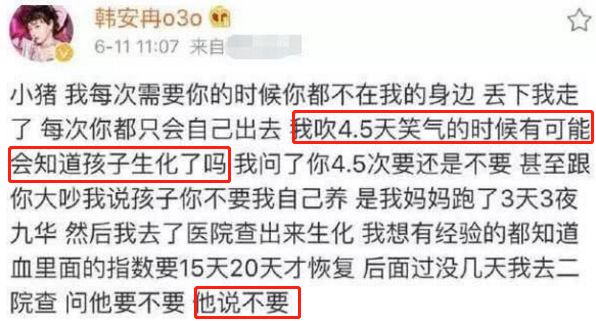 而且听韩安冉的话外音,两人矛盾的爆发点应该是发现第三次怀孕了,小猪打算继续不负责任。