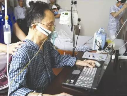 就连在生命的最后一分钟,都要人搀扶着坐在电脑前工作。他戴着氧气罩,还一直说着“我不能这样倒下..."/ [# A2 \6 b a+ U' j* D0 K