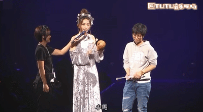 8 Z5 ^5 B& y( i3 s- N在演唱会上敲木鱼也是她的独门绝技了。