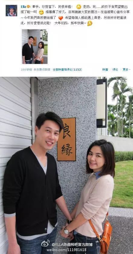 + V L3 {8 o' J) @) n8 R后来就直接在微博上宣布了婚讯。+ g) a8 {: n3 a, V& m: t