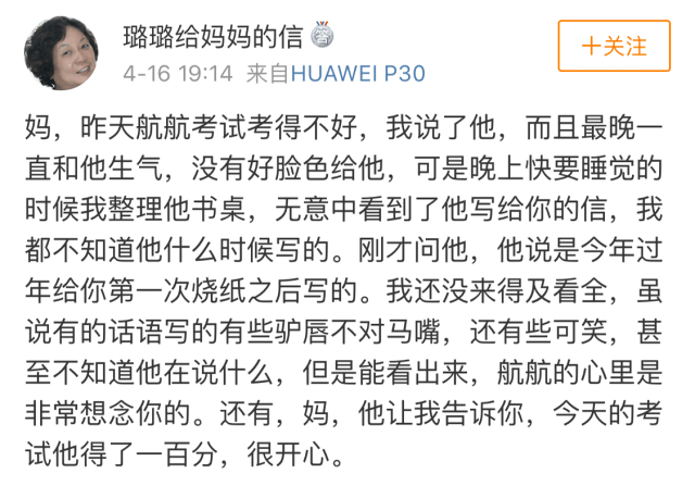 他好好生活,因为知道那是她所希望的,他思念她,因为在心里始终牵挂她。