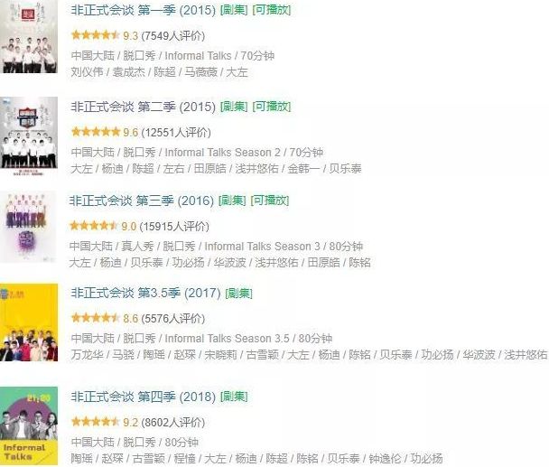/ ?0 R: E5 T1 ?/ G j% e) y可就是这样一个,没有大平台、没有大明星、没有大赞助的“三无综艺”,从第1季到第4季的平均分高达到9.14。