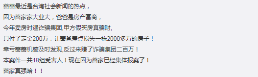 4 I7 n, U9 ^9 P5 b( h! Y只付了定金200万,让蔷爸差点损失一栋2000多万的房子!幸亏蔷蔷机警及时发现,反过来赚了诈骗集团二百万!