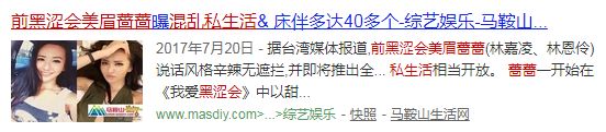 并且,还有报道:前黑涩会美眉蔷蔷(林嘉淩)自爆私交40砲友!上床前会先验货试一下尺寸 。