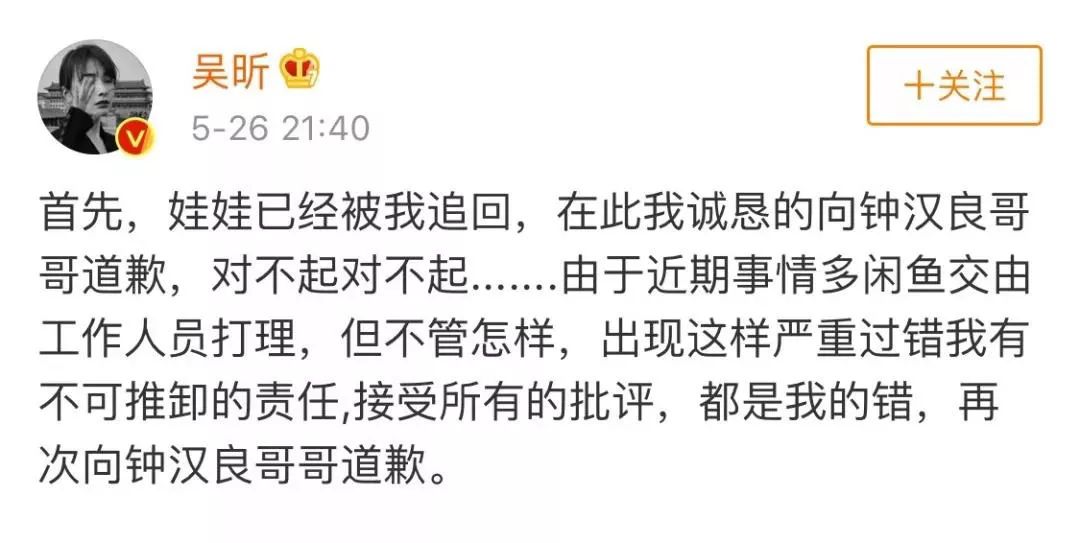& T( i0 w$ K8 x$ U5 W! j" E在评论区更有人爆料说之前她就卖过何炅送的衣服和饶雪漫送她的书等等,被网友热议之后,吴昕也意识到了问题严重,立刻在微博向钟汉良道歉,并且表示玩偶礼物已经追回,出现这个疏漏是因为自己太忙将二手平台交给工作人员管理所致。