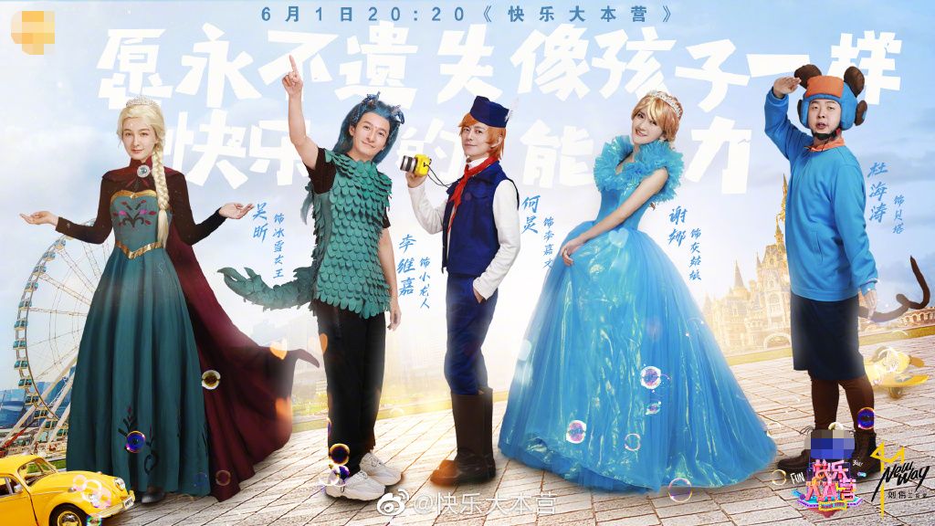 ! U; M" [, ~2 m1 z* C: @比如昨天的《快乐大本营》,就打造了一场回忆童年六一特辑,画面一度很惊(辣)艳(眼)……; o h! _8 G% d1 b" V$ ^! j( Y