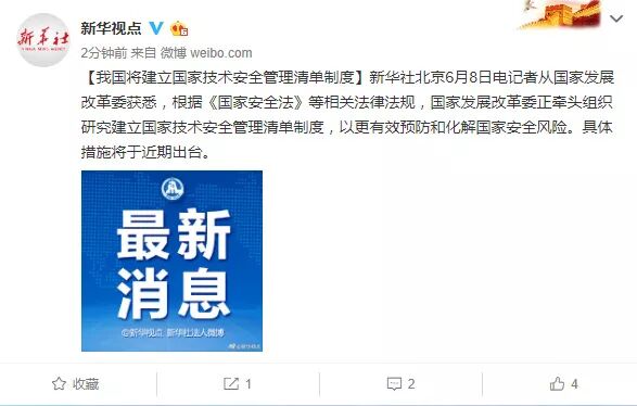 中国将建立国家技术安全管理清单制度,近期将出台具体措施2 w$ A+ ]9 H/ q0 ?( A! S