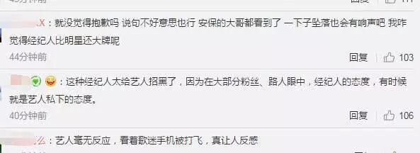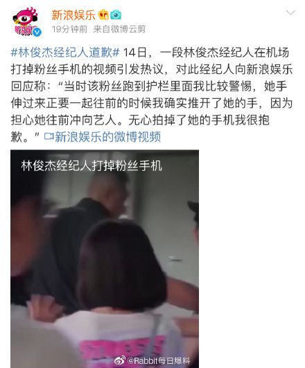 面对网络上愈演愈烈的舆论态势,其经纪人也就此事回应:“当时该粉丝跑到护栏里面我比较警惕,她手伸过来正要一起往前的时候我确实推开了她的手,因为担心她往前冲向艺人。无心拍掉了她的手机我很抱歉。”