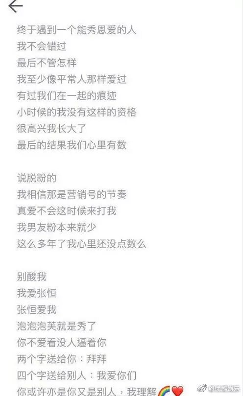 当然,也有粉丝表示,“女孩子晒晒心爱的男朋友很正常吧”“无论和谁在一起都是她的自由,只要小爽幸福就好啊。还有我们都还在,不要代替我们脱粉。”