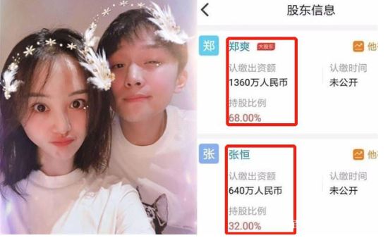 据说这个公司,出资千万的郑爽还成了公司的大股东,张恒出了600多万,是公司的执行董事。