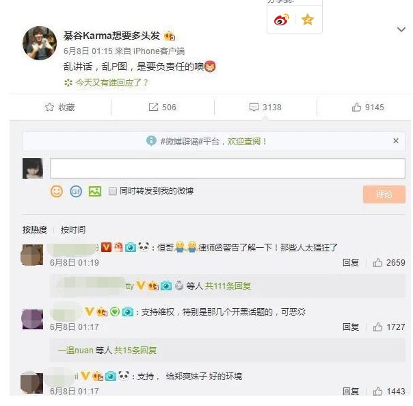 : f" j% ~9 K6 o7 c- k这份律师函主要针对是日前多名网友蓄意发布大量关于郑爽的侮辱、诽谤言论及图片。其实郑爽出道十年,一直以来都伴随着很多谣言,以前她没有在意过,更没有正面回应过,但做为男友却很心疼,在一周前他就在微博里警告过这些网友。4 I! y* P9 L6 k) q8 m