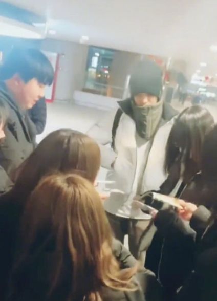 $ K) C( {0 G5 B1 v爽儿给粉丝签名,男友就在一旁默默等待~