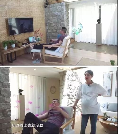 在节目中,陈建斌躺在沙发上看电视,不做饭,蒋勤勤大着肚子却在做饭;