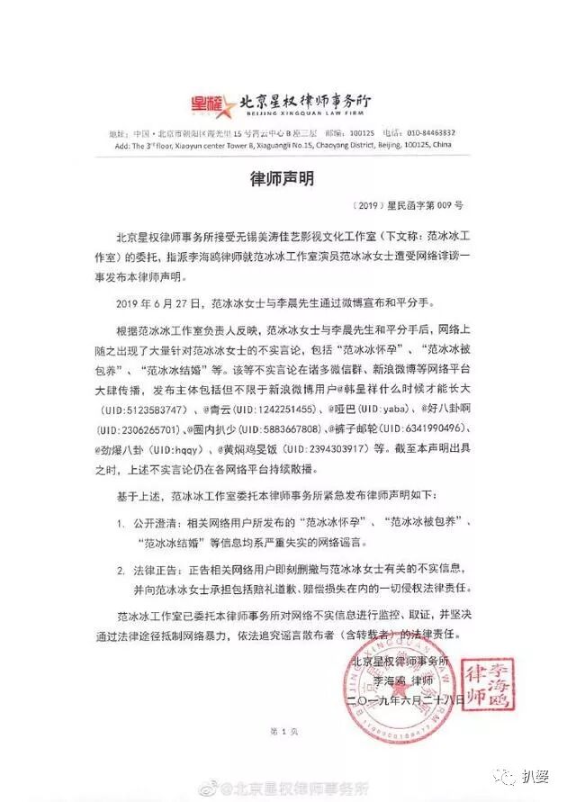 ( z; L) Y I( n6 B; D力证身材不变后,范冰冰工作室又发出了律师函,再次否认并且要依法追究造谣者的责任。